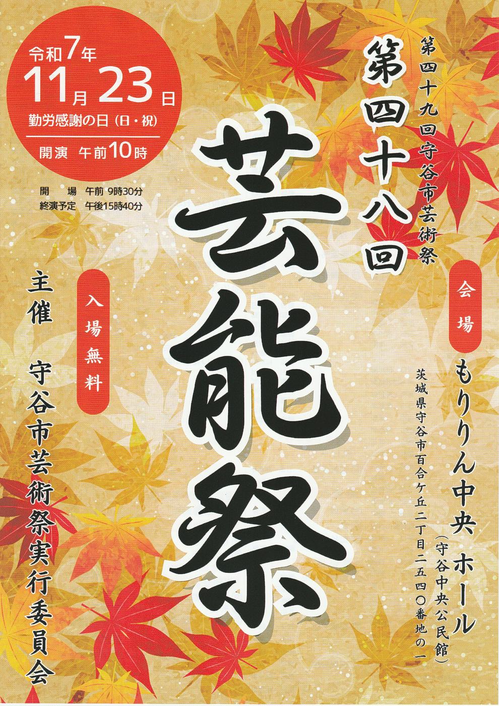 - ■ 第46回 芸能祭  令和5年11月23日 守谷市 もりりん中央(中央公民館)にて